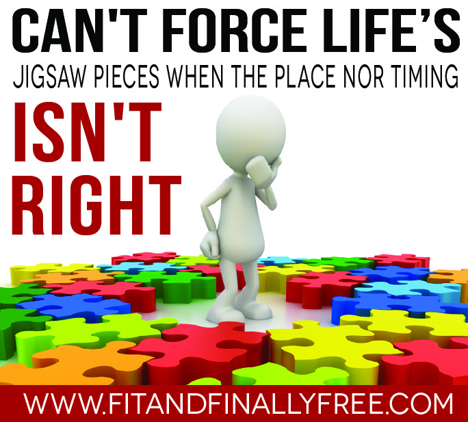 When attempting in putting the puzzle together, sometimes we get too excited or impatient and try to force the pieces in certain spots or areas where they don’t belong. We get ahead of ourselves to the point where we become frustrated because it’s not turning out how we expected it to be or in the time frame we thought it should have been done in only having to start over again.