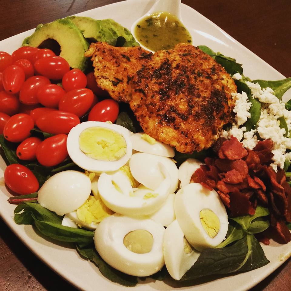 It’s the final week of my 12 week series of The Summer of Salads. Featured this week is the California Cobb Grilled Chicken Salad over Power Greens with a Honey Jalapeno Vinaigrette.